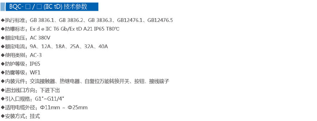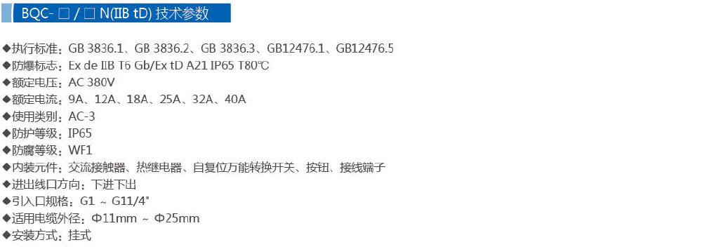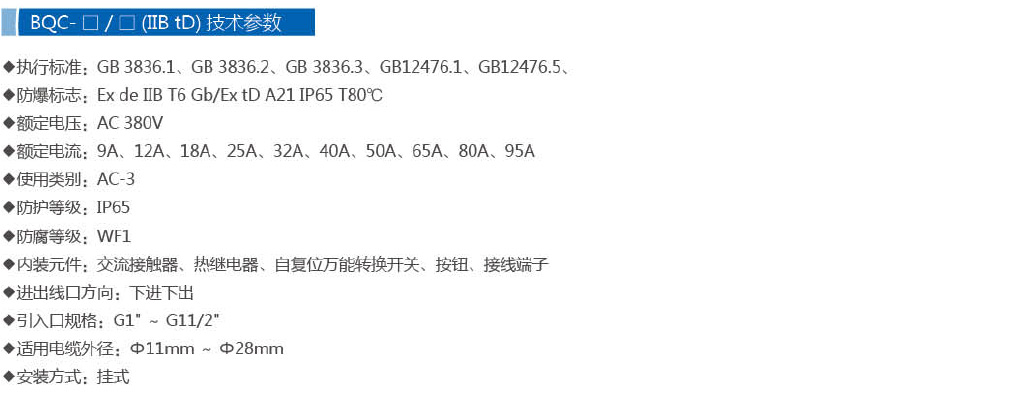 · 主要采用 隔爆型(Ex d) 防爆結構。其堅固的殼體(通常為鋁合金)能承受內部元件(如接觸器吸合/分斷時)產生的電弧或火花可能引發的爆炸,并通過精加工的隔爆面間隙阻止爆炸向外傳播。